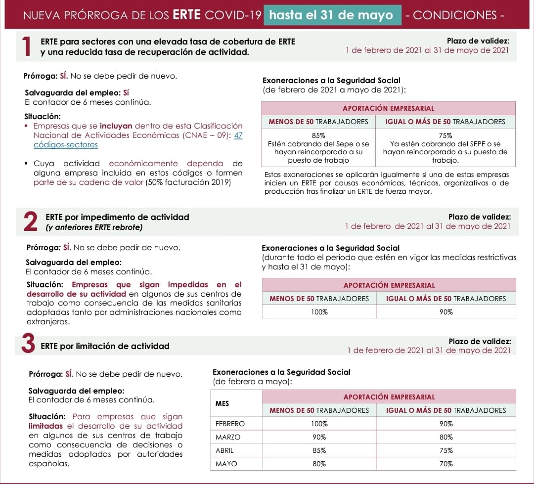 CONDICIONES NUEVA PRORROGA DE LOS ERTE COVID-19 HASTA 31/05/2021